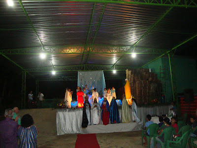 no galpão do centenário Sítio a celebração da Santa Missa pelo Padre Antônio Tabosa Gomes, Diretor Superior do Mosteiro dos Jesuítas.
